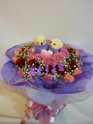 玫瑰花36朵+滿天星&一對熊熊 等花材